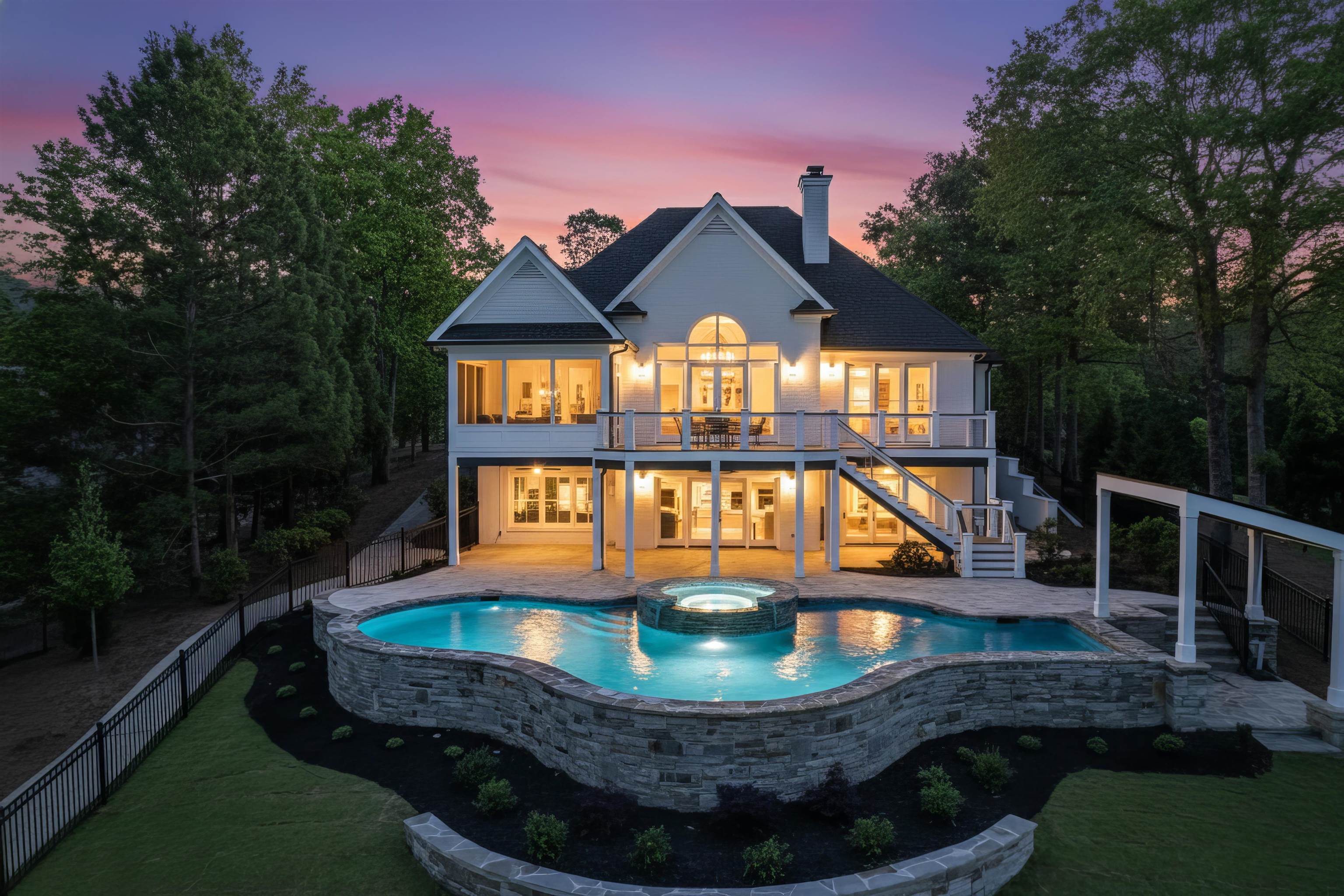 Prices for Lake Oconee single-family homes for sale typically start around $400,000 for interior lots and can exceed $3 million for custom lakefront estates with deepwater access, high-end finishes, and panoramic views.